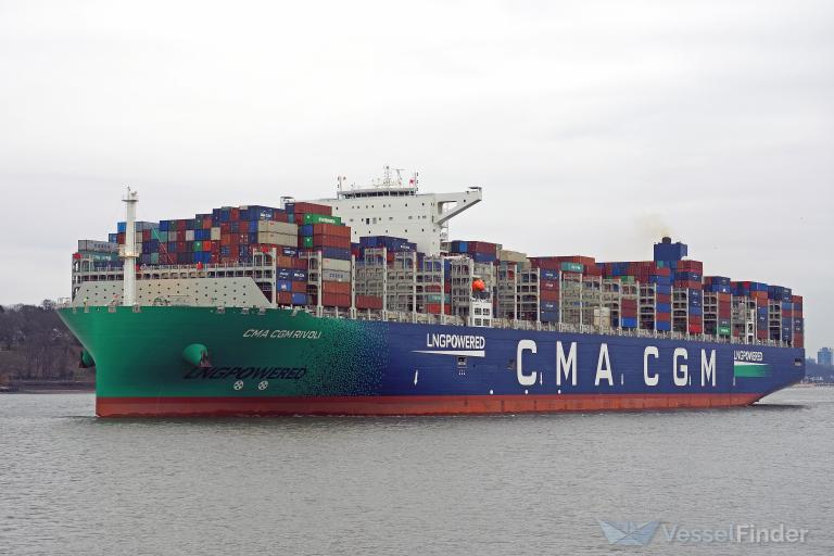 The vessel CMA CGM RIVOLI (IMO: 9839193, MMSI 228397600) is a Container Ship built in 2021 (1 year old) and currently sailing under the flag of France.